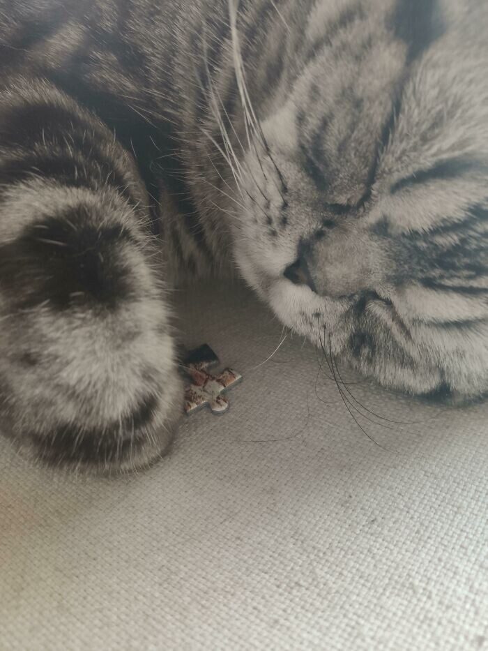 «Мой кот спит с последним кусочком пазла, который я искала минут 10»