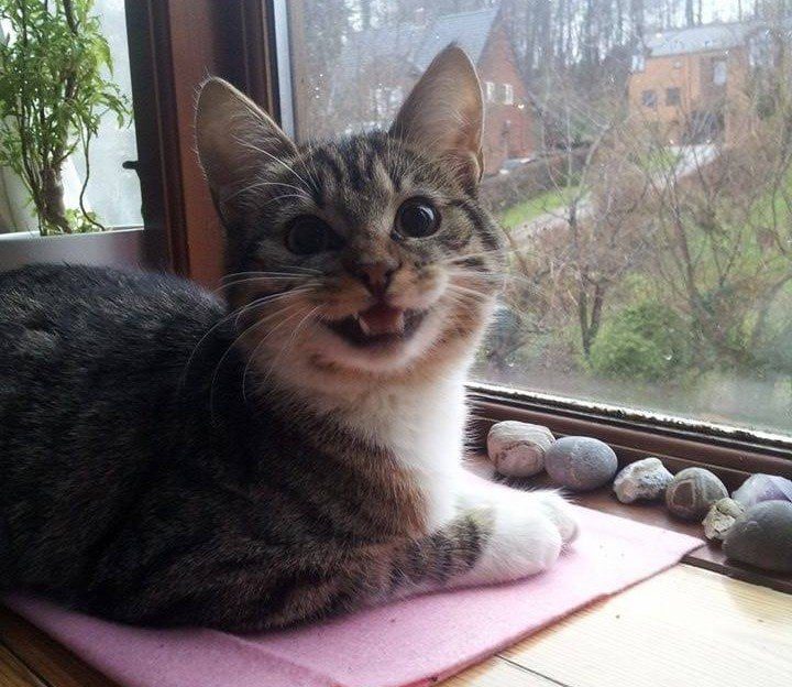 Почему-то именно такое лицо делает мой кот, когда ему очень весело.