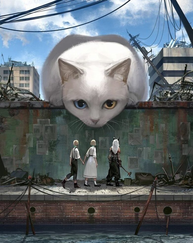 Миp был бы намного интереснее, будь в нем огромные коты. Загадочная японская художница, которую в соцсетях знают по псевдониму Ariduka55 или Monokubo, создает фантасти ческие иллюстрации с мирами, в которых гигантские добрые животные живут бок о бок с людьми. Ее работы перенесут вас в красивый мир грез, наполненный теплом и добротой.