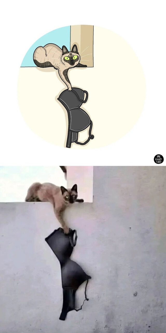 Tactooncat — иллюстратор из Индонезии, который перерисовывает и без того уморительные кошачьи картинки, чтобы сделать еще более смешные карикатуры. Сейчас художник стал перерисовывать и смешные видео