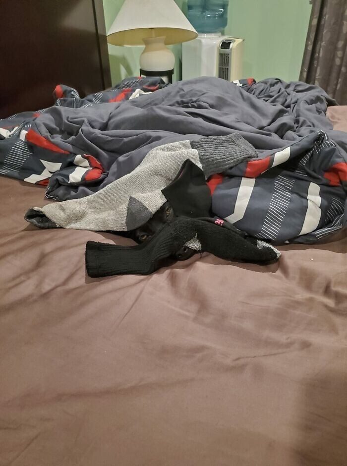 «Все внимание на второе фото. Моя собака куда-то пропала, и я уже начала паниковать в поисках. Оказалось, она была здесь.»