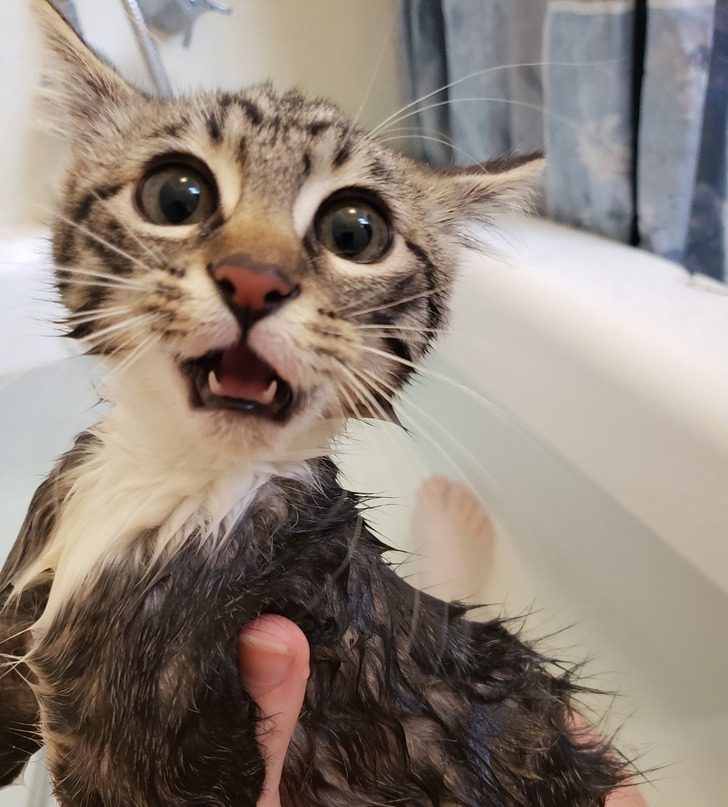 «Моя кошка немного с опозданием поняла, что она вообще-то уже не хочет принимать ванну»