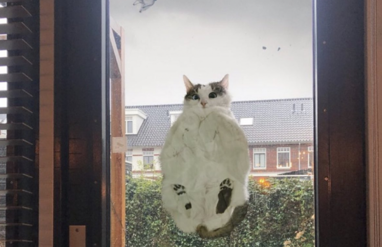 «Как у него это получилось?» © У него просто друг геккон, вот он и научил котика как прилипнуть к вертикальной поверхности ツ