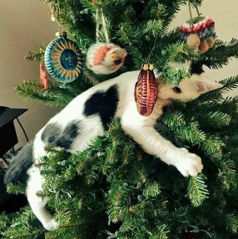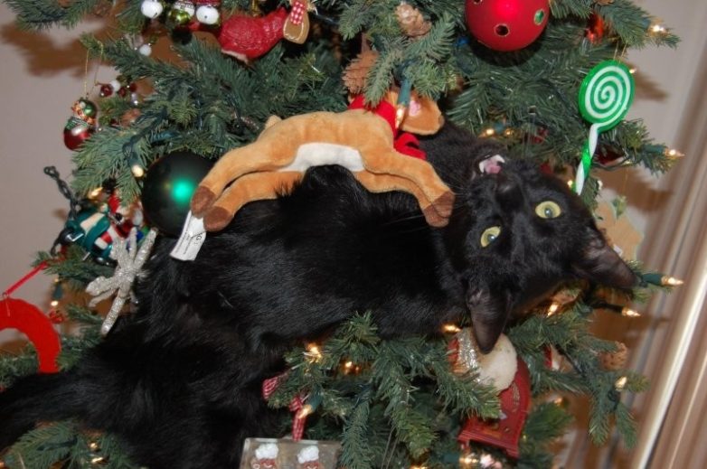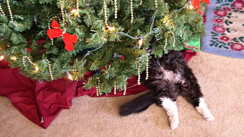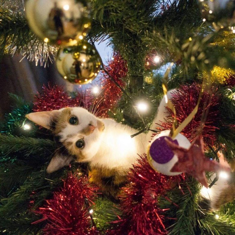 А уж если дерево большое, то домашним любимцам определённо есть где разгуляться. И для них наступает время пряток – самой новогодней игры.