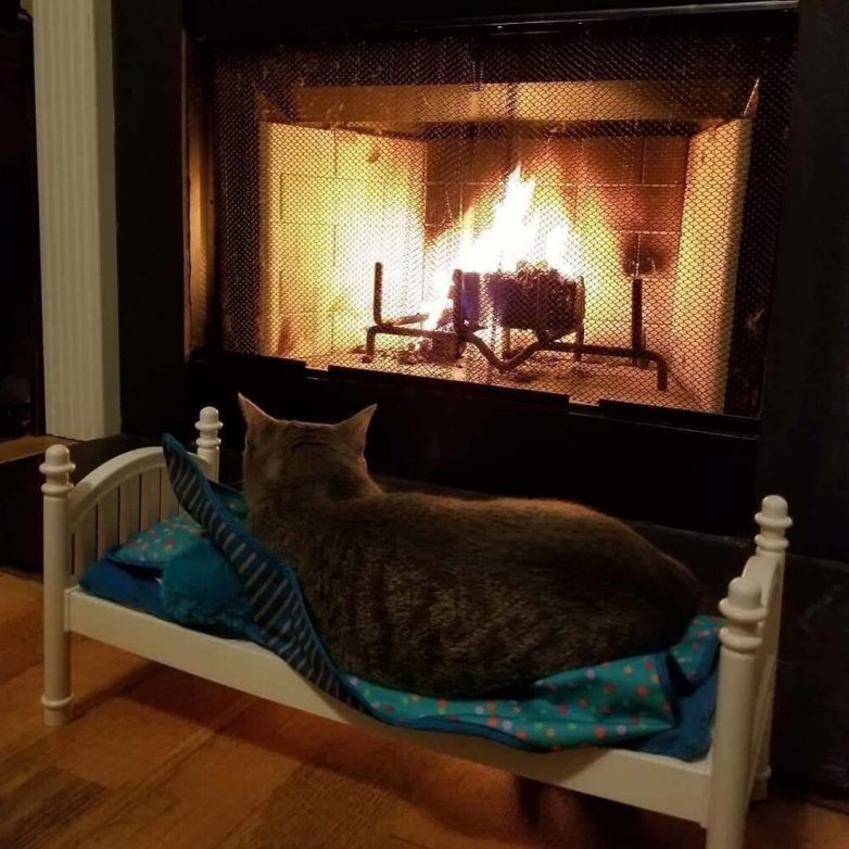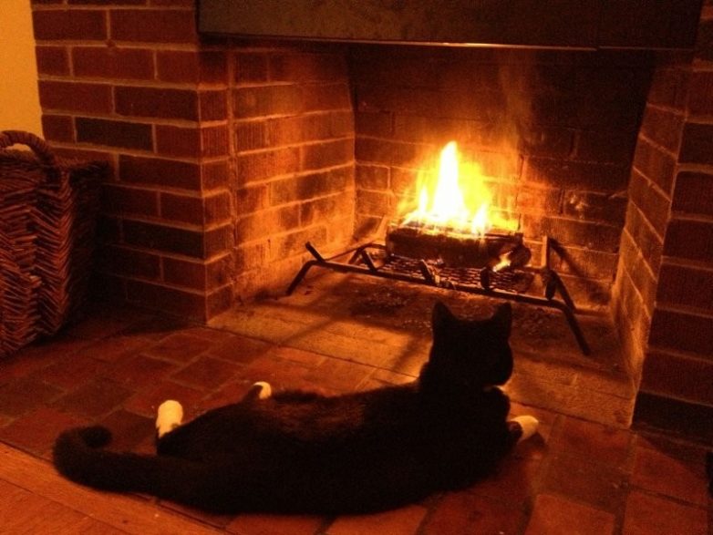 Если камин согревает тело, то душу согреют сидящие возле него котики. К огню они относятся настороженно (возможно, сказывается генетическая память), но могут часами заворожённо наблюдать за игрой языков пламени, оглашая пространство утробным урчанием. Кошка и камин – пожалуй, идеальный дуэт зимнего интерьера.
