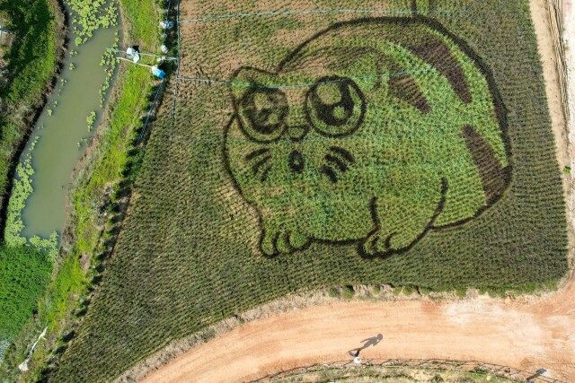 Фермер Таньяпонг Джайхам (Tanyapong Jaikham) со своей командой искусно высадил саженцы по всему полю в северной провинции Чианграй, чтобы создать мультяшные образы кошек, привлекая туристов и любителей популярных животных.