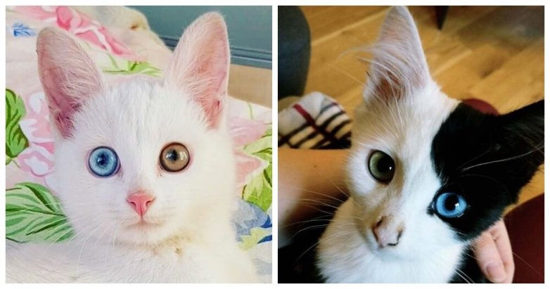 У братьев наших меньших это явление хотя и обусловлено прозаичными причинами – генетикой, болезнью или травмой, но придаёт обладателям разных глаз какую-то мистическую притягательность. Разноглазие встречается в основном у кошек, в расцветке которых превалирует белый. Такие котики выглядят трогательно и волшебно, просто вынуждая на мгновение погрузиться в бездонные глубины разноцветного взгляда.