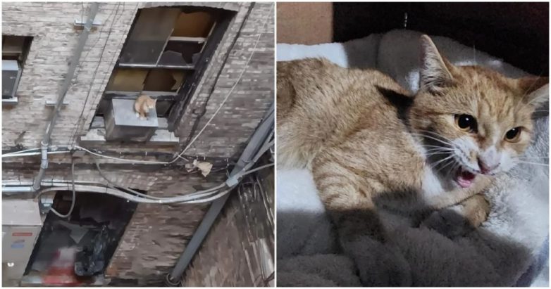 Кот упал с крыши и завис на кондиционере. Он несколько дней просидел там в одиночестве и не мог спуститься.