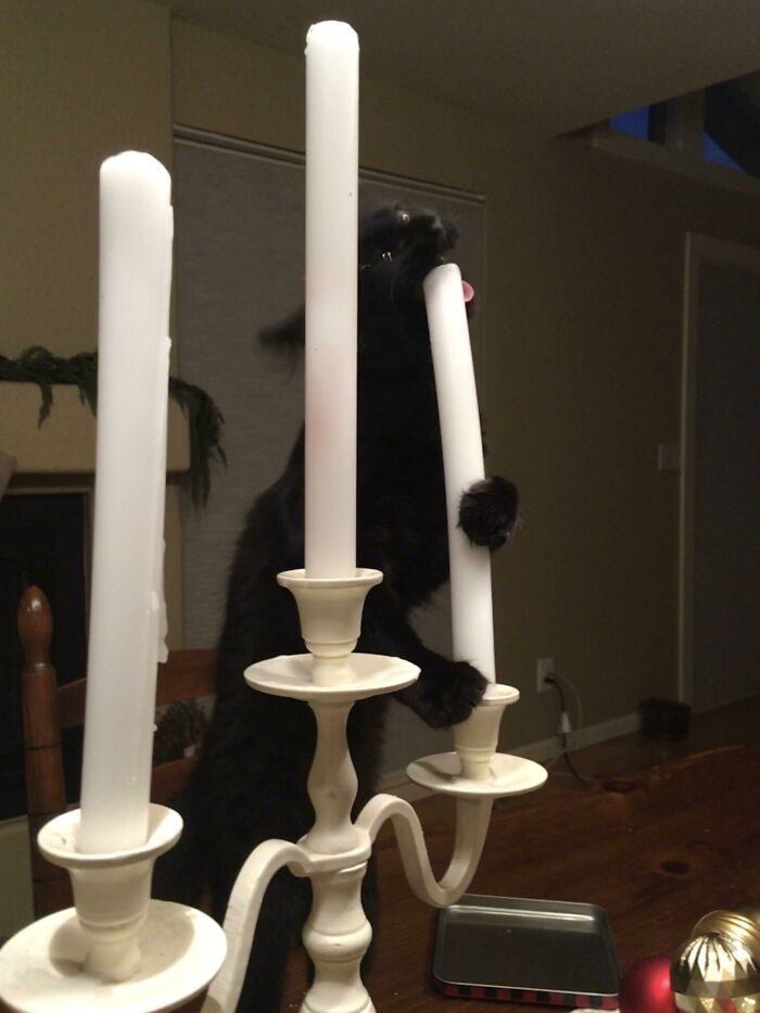Похоже, что тут и кот, и его хозяин не особенно рады празднику.