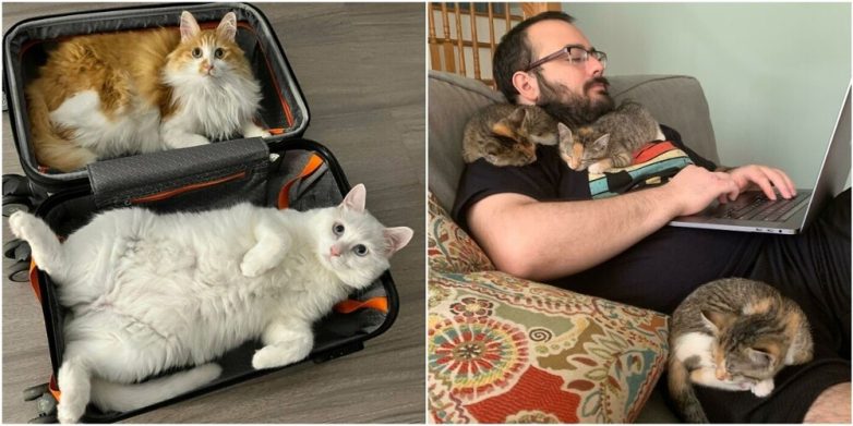 21. «Мой муж иногда пытается держать всех наших котов вместе. Иногда у него получается»