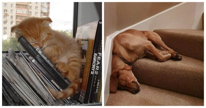 Когда усталость валит с лап, уснёшь не только сидя или стоя, но и на ходу и даже вниз головой.