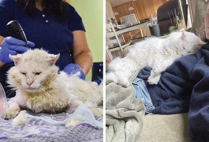 «Этот кот несколько лет назад пришел ко мне на крыльцо с температурой и колтунами. Вот как он выглядит сейчас»