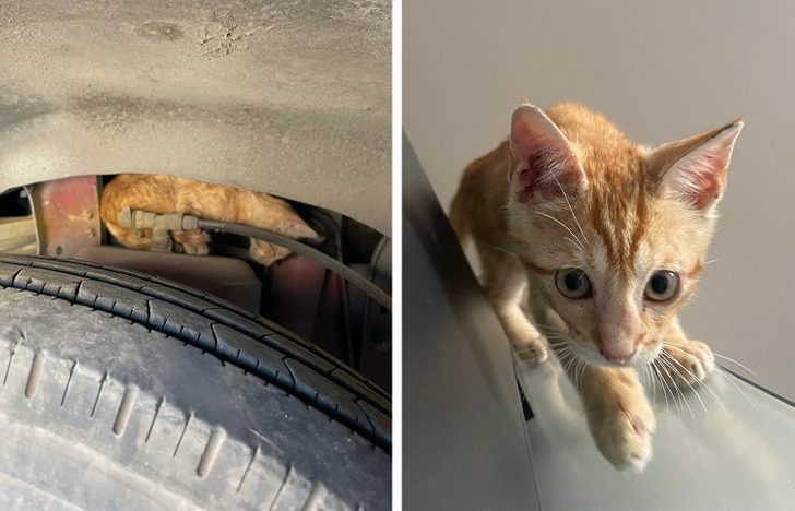 «Неделю назад я спасла котенка, который сидел на двигателе автобуса. После 7 дней заботы, любви и визитов к ветеринару он чувствует себя прекрасно!»