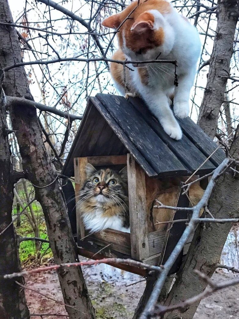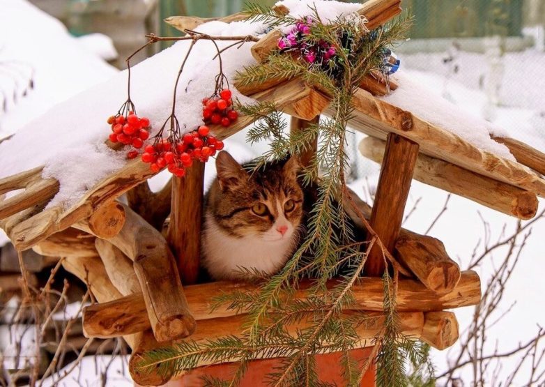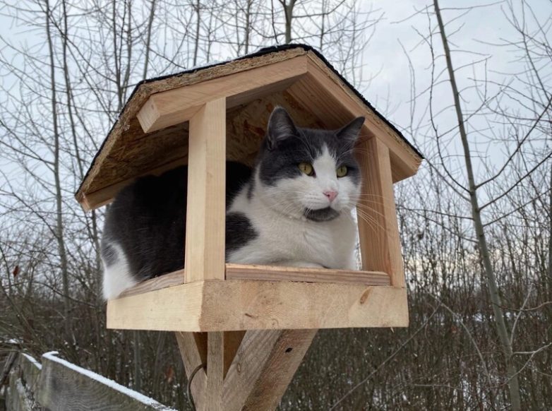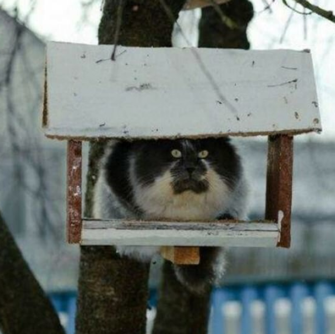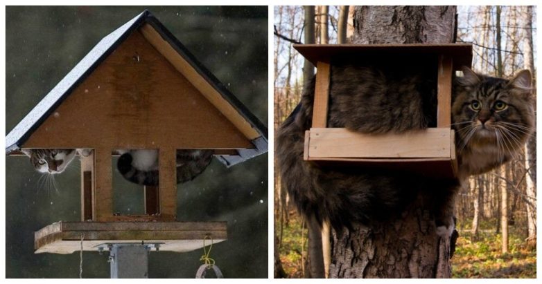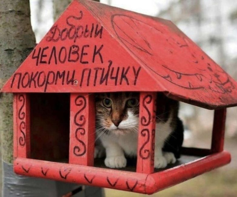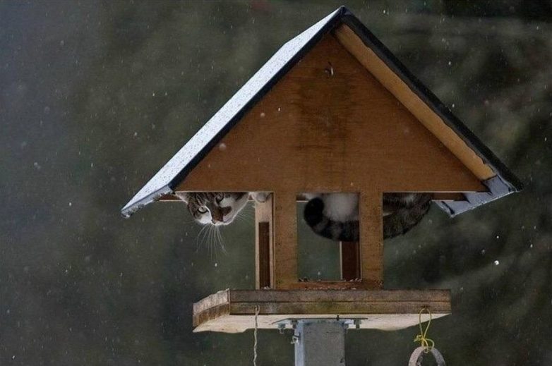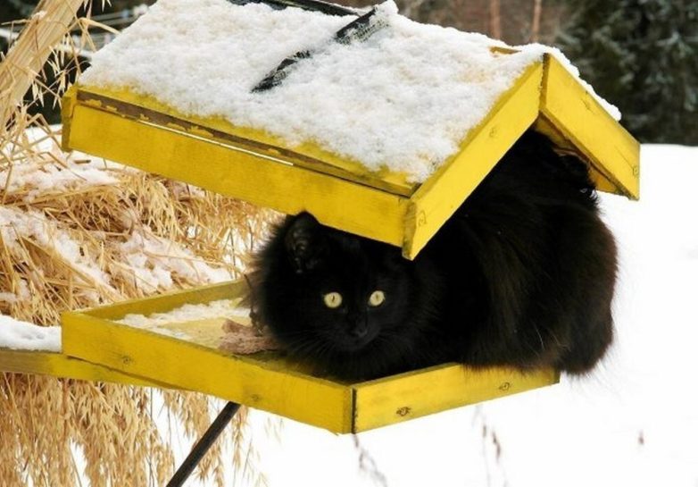 Их уже облюбовали другие граждане. По их виду не скажешь, что они так уж голодают. А некоторые так и вообще рискуют влезть в кормушку и благополучно застрять в ней. Зачем котики это делают? Возможно, кормушки напоминают обожаемые кошками коробки. А, может, хвостатые так испытывают себя на прочность или просто отдыхают от домашней суеты, старательно высматривая припозднившуюся весну.