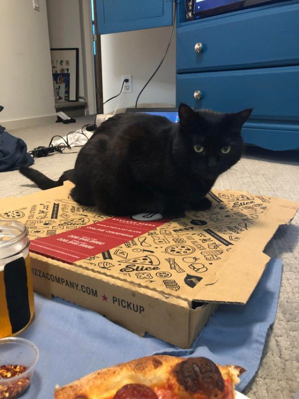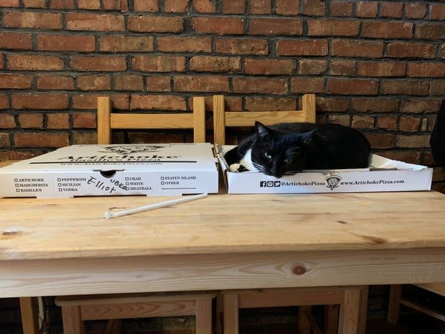 «Замороженная пицца все еще в коробке. Но кот против, чтобы я ее брал»