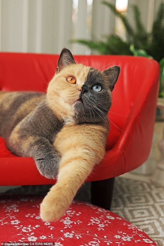 Кошки-химеры обладают такой необычной «двуликой» внешностью из-за наличия двух уникальных наборов ДНК.