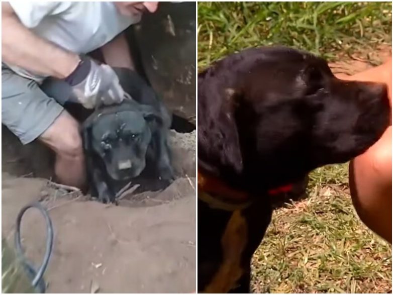 На прогулке пёс по кличке Джекс внезапно упал между двумя валунами, провалившись в глубокую пещеру. Хозяйка испугалась того, что пёс что-то повредил, и она больше его не увидит… Но решила оперативно действовать.