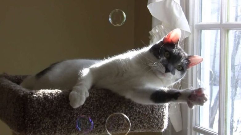 Питомцы, и их реакция на мыльные пузыри