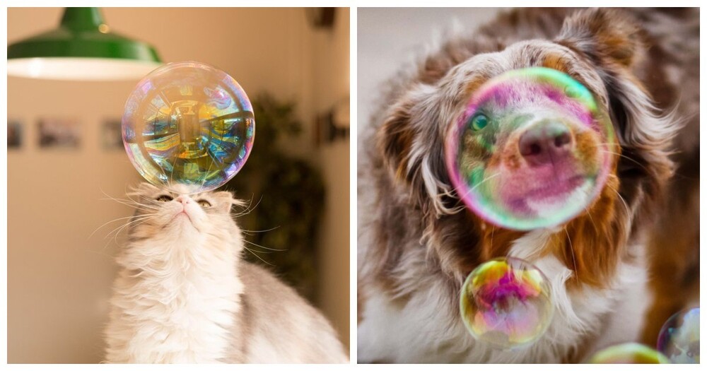 Да и взрослые иной раз не прочь погрузиться в беззаботные воспоминания. А вот братья наши меньшие реагируют на эти штуковины не так радостно. Ведь пузыри странно выглядят, резко пахнут, подозрительно переливаются и мгновенно исчезают, стоит только к ним прикоснуться. Зато остаются дивные фотографии и приятные воспоминания.
