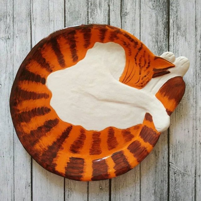 От черно-белых до полосатых и рыжих, ее керамическая посуда в виде свернувшихся кошек являются идеальной для любителей кошек.