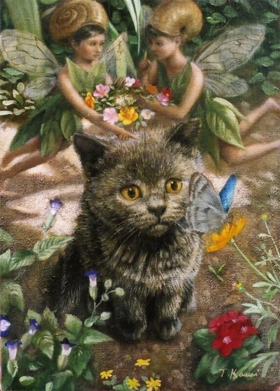Тохукиро Каваи — японский современный художник, который больше всего известен своими картинами величественных кошек. Этой серией он превознес котов до небес, изобразив их королевскими персонами исполинских размеров.