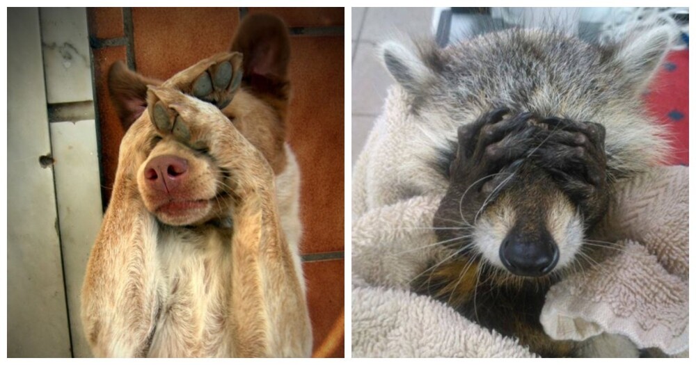 Если у людей этот жест сразу понятен, то животные делают это неосознанно. Например, кошки часто кладут лапку на мордочку, когда спят. Делают они это не специально, просто привыкли так спать. Собаки прикрывают мордочку когда нераничают или сильно возбуждены. Другие животные могут так умываться, чесать нос или прикрываться.