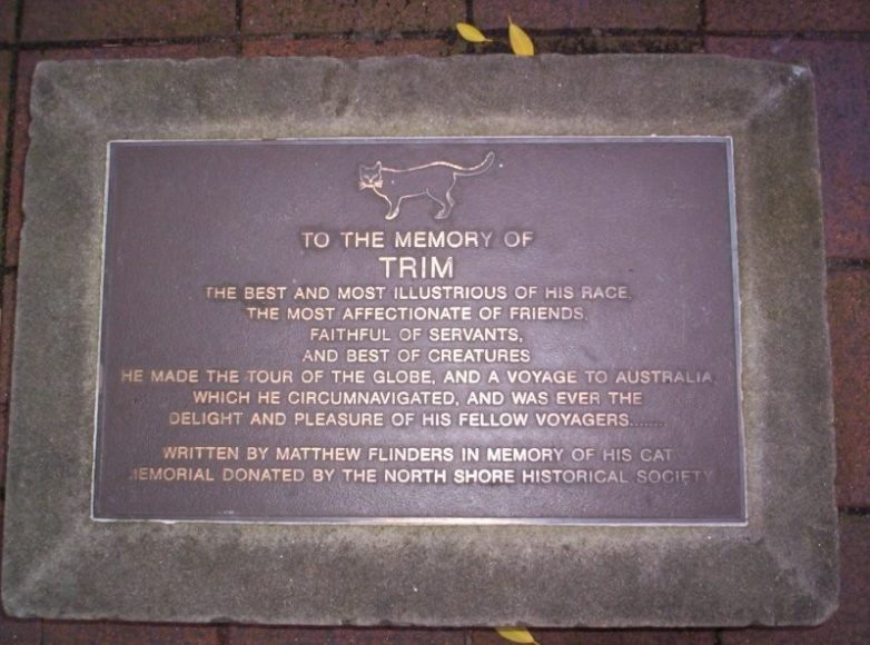 Триму посвящена отдельная мемориальная доска, где написаны первые строки из эпитафии, которую Флиндерс написал для своего кота: «Памяти Трима, лучшего и самого прославленного представителя своего рода, самого ласкового из друзей, верного из слуг и лучшего из существ. Он обошёл весь земной шар, совершил путешествие в Австралию, которую обогнул, и всегда был отрадой и удовольствием для своих товарищей по плаванию».