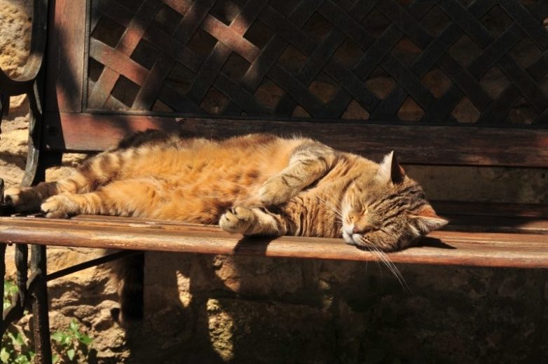А после обследования местности с чувством выполненного долга завалиться на скамейку, чтобы восстановить силы и не пропустить тот волшебный момент, когда хозяйка начнёт греметь кастрюлями и кормить умницу-помогатора. Скамейка и котик – созданы друг для друга.
