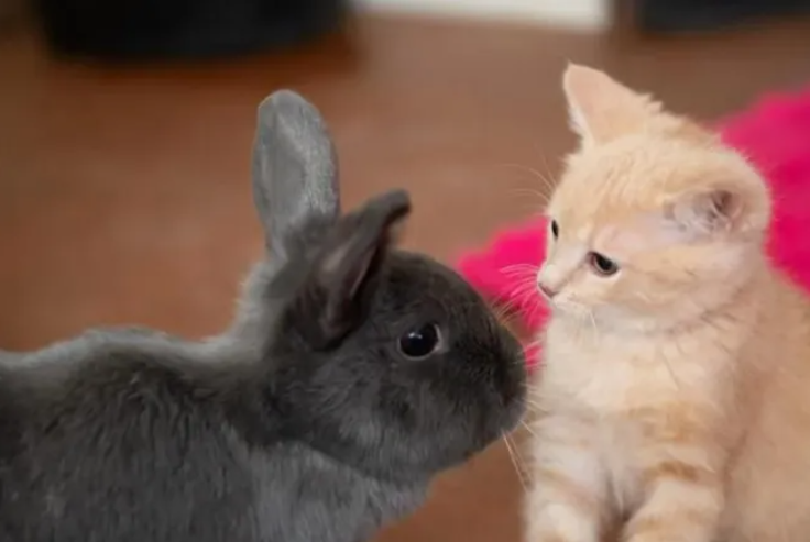 Канело был в восторге от своих новых соседей. Хотя некоторые ушастые и отнеслись к нему настороженно, большинство не прочь было поиграть с ним, когда он за ними гонялся. Котёнку также нравилось забавляться с соломками сена, пока кролики его жевали.