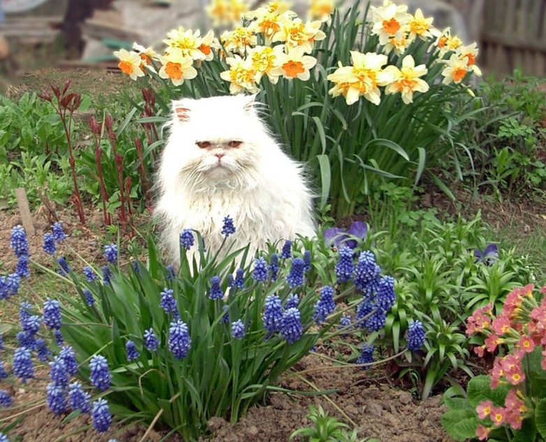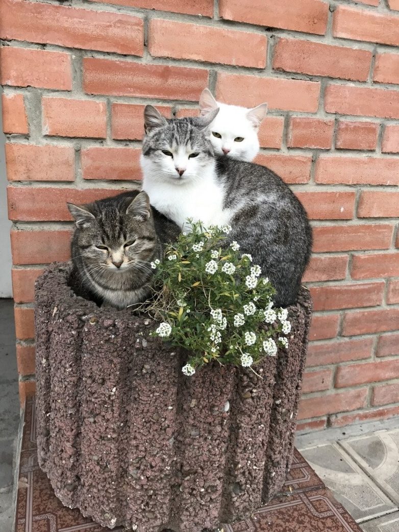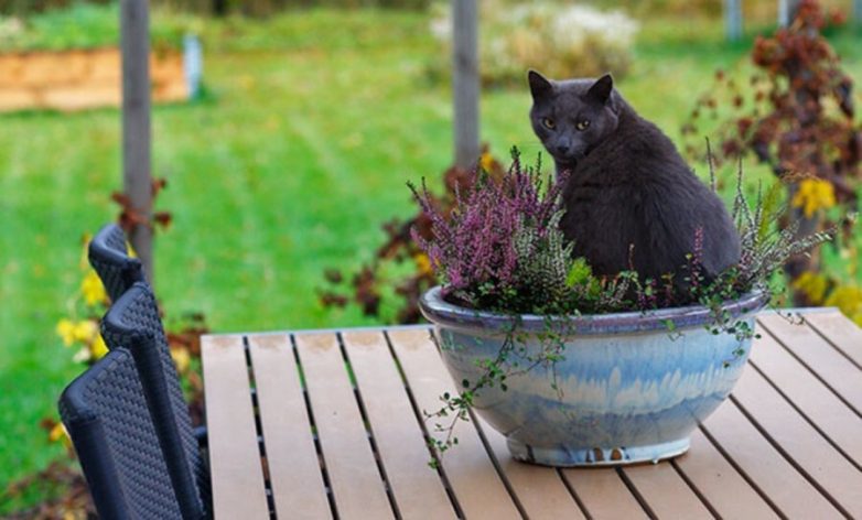 Смотреть все фото в галерееНо из скромного элемента дизайна она превращается в настоящий шедевр, если её возжелают украсить своим присутствием котики. Когда пушистое создание сидит или лежит на клумбе, то надо срочно делать фотки. Ибо это и есть настоящая красота – простая, безыскусная, истинная.