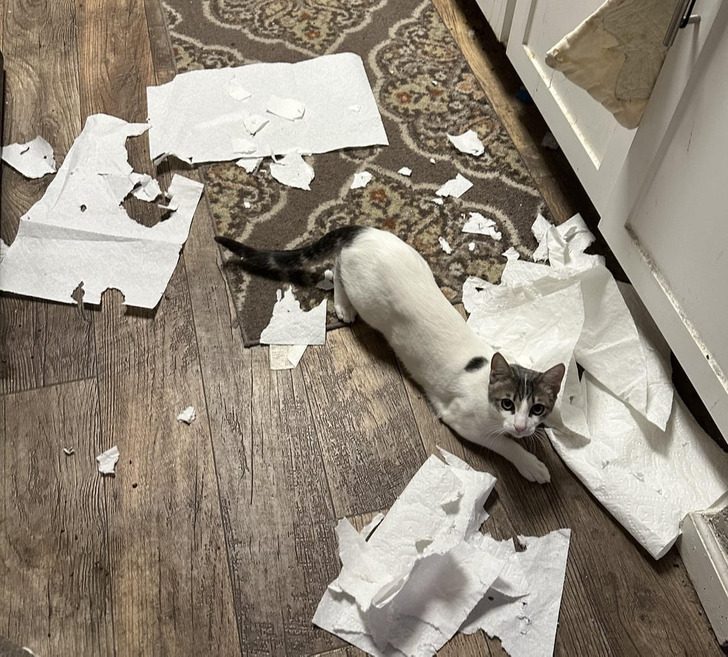 «Сначала он уничтожал туалетную бумагу, но я ее спрятала. Так кот нашел бумажные полотенца!»