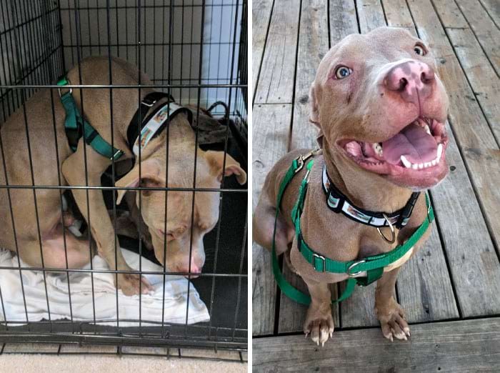 «Когда мы усыновили Буна, он весил всего 9 кг, истощенный, израненный от нападений, покрытый язвами, вонявший канализацией и всего боявшийся. Теперь он 22-килограммовый милый и дурашливый пес»