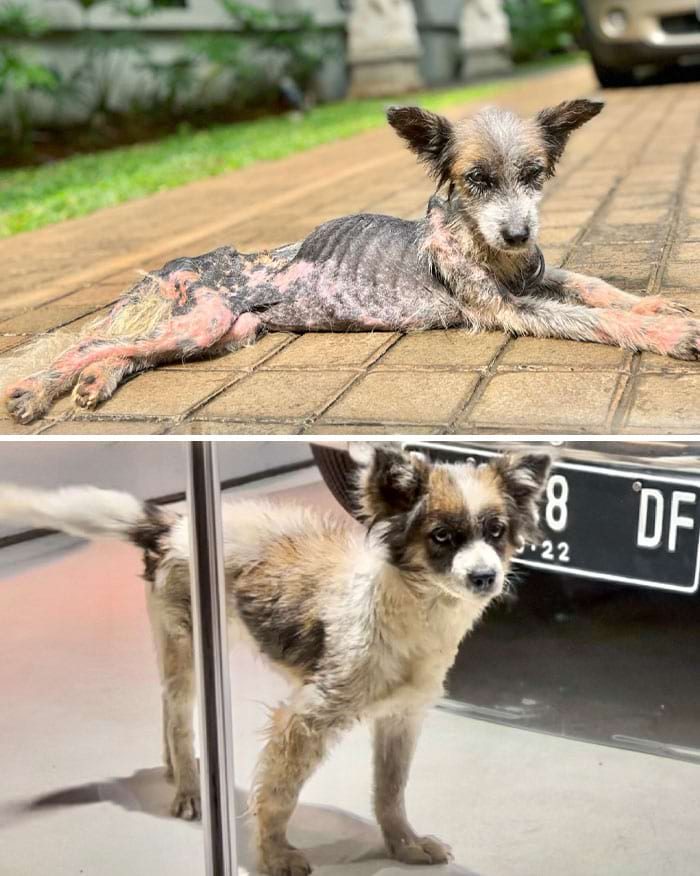 «Бродяга Джефф, которого я нашел некоторое время назад. До и после»