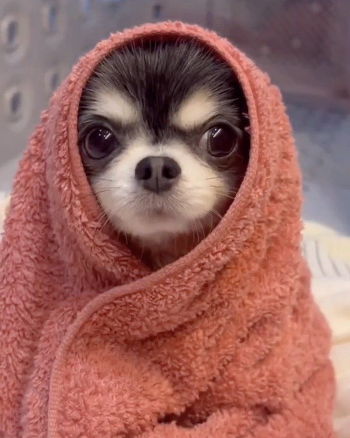 16. “После банных процедур, завернутый в полотенце, наш песик выглядит особенно няшным”