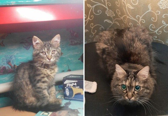 Предлагаем вашему вниманию сравнительные фотографии, которыми делятся Интернет-пользователи, демонстрируя очаровательные превращения котят в роскошных кошек.