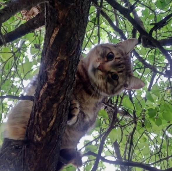 Как спасатели снимали с дерева кошку и её хозяйку