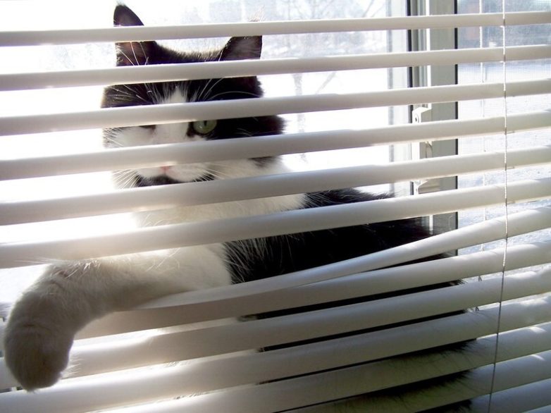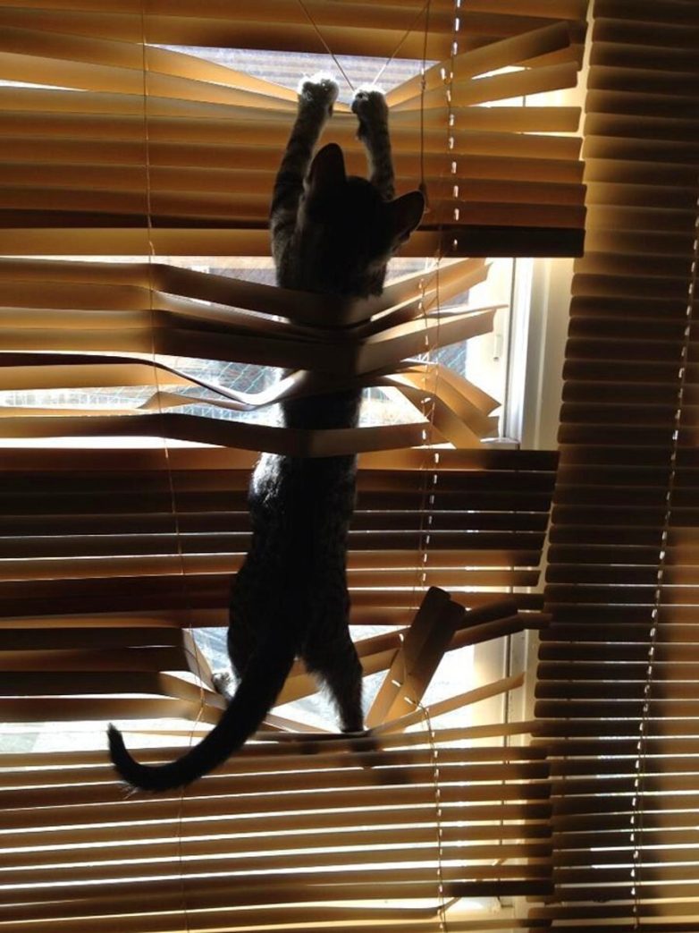 Постепенно изобретение распространилось и в других регионах, где вопрос с жарой не такой уж актуальный. Зато недостаток солнца и свободы актуален для некоторых жителей домов и квартир, владельцы которых повесили на окна жалюзи. Котики с ними почему-то зачастую не уживаются и ведут активное противостояние. Удача улыбается то одной, то другой стороне, а в качестве третейского судьи в бесконечном споре между пластинчатыми и пушистыми обычно выступает кожаный с фотоаппаратом.