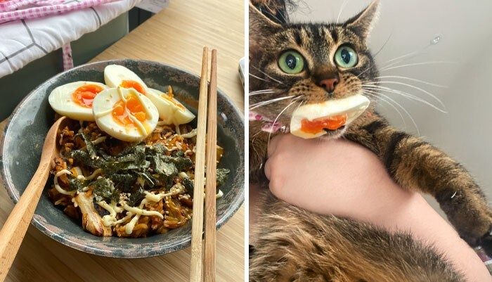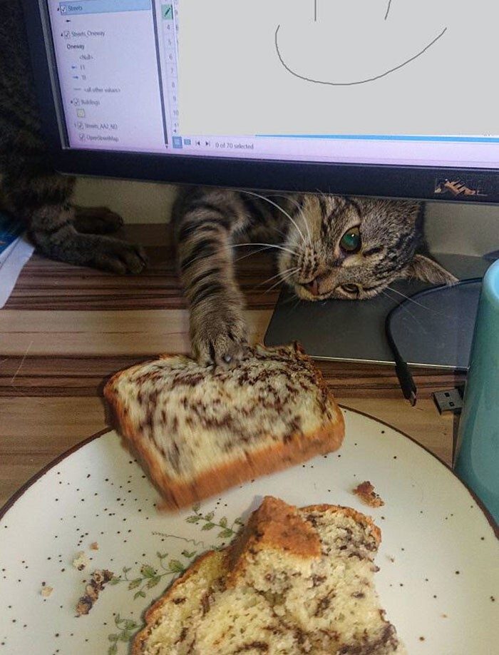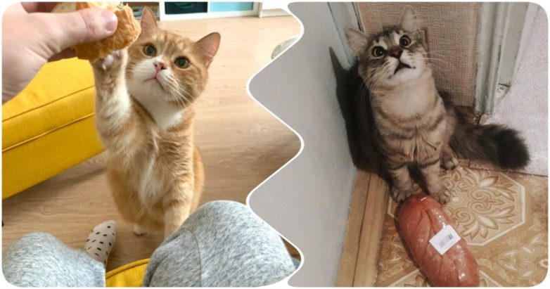 Животные всегда хотят утянуть кусочек с хозяйского стола. Они стремятся заполучить хотя бы кроху, что утолить своё любопытство и животики.