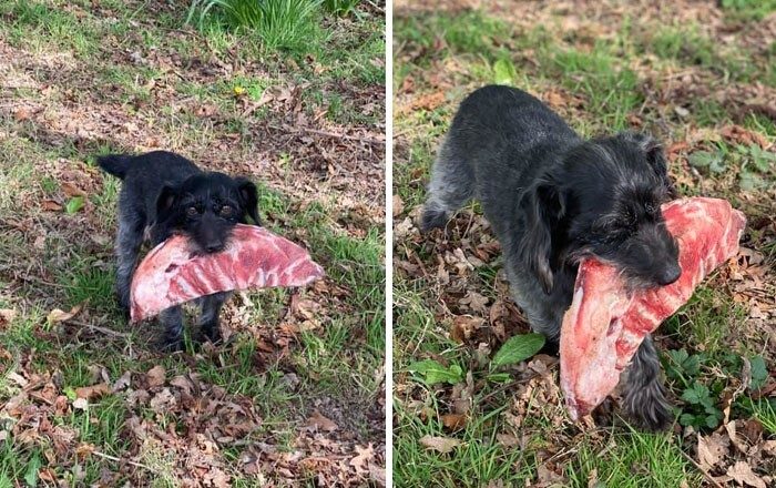 5. «Хочу извиниться перед нашими соседями, у которых пропал кусок ребер. Наша собачка улизнула через забор и вернулась через час с этим»