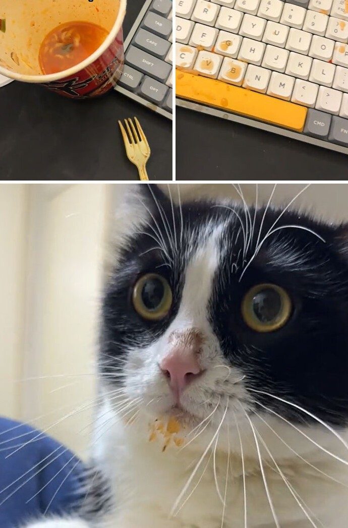 28. «Поймал своего кота поедающим мой суп, пока я разговаривал по телефону. Вот уже более 10 лет мне приходится следить за ним каждый раз, когда я ем. Он никогда не сдается. Я люблю его»