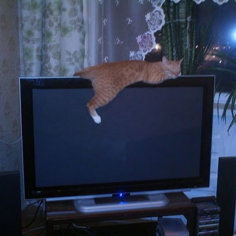 Под его мерный бубнёж унылые домашние дела делаются быстрее. А ещё – это настоящая находка для котиков. Пушистые по-разному используют достижение технического прогресса – смотрят телевизор, спят под его звуки, возлежат на нём. И даже порой роняют, увлёкшись тыгыдыками. Но это мелочи, ведь ящик всегда можно купить, а особенные котики – товар редкий, ценный, штучный, дефицитный.