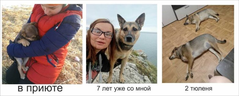 «Приехала в приют волонтёром, не планировала брать собаку… Но по итогу взяла щенка на пристройство и не смогла уже с ней расстаться!!! Наша любовь уже продолжается 7 лет...)))»