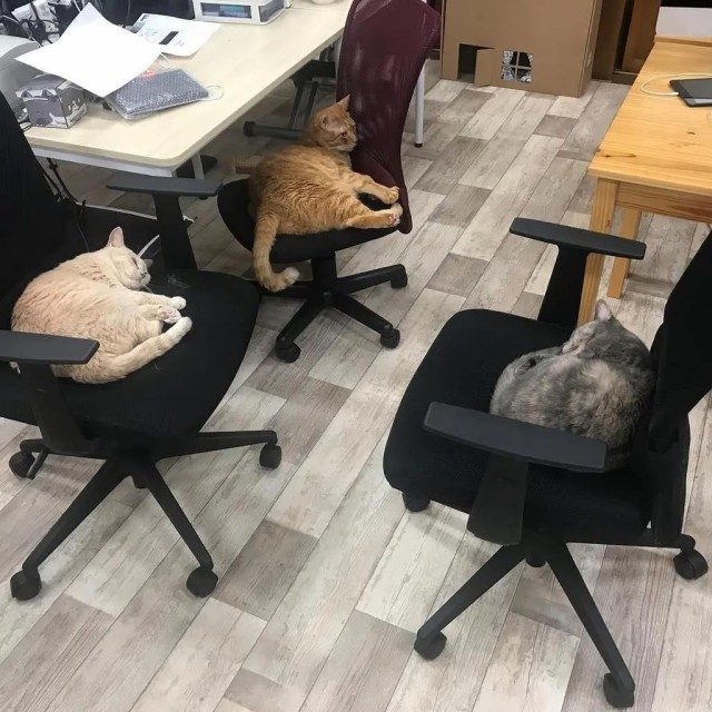 Когда компания переехала в более крупное четырехэтажное офисное здание в 2020 году, она не забыла о своих самых важных сотрудниках. Компания отремонтировала второй и третий этажи, чтобы продемонстрировать свою приверженность благополучию кошек, установила 12 кошачьих туалетов и полок для кошек и даже покрасила стены, чтобы предотвратить царапки.