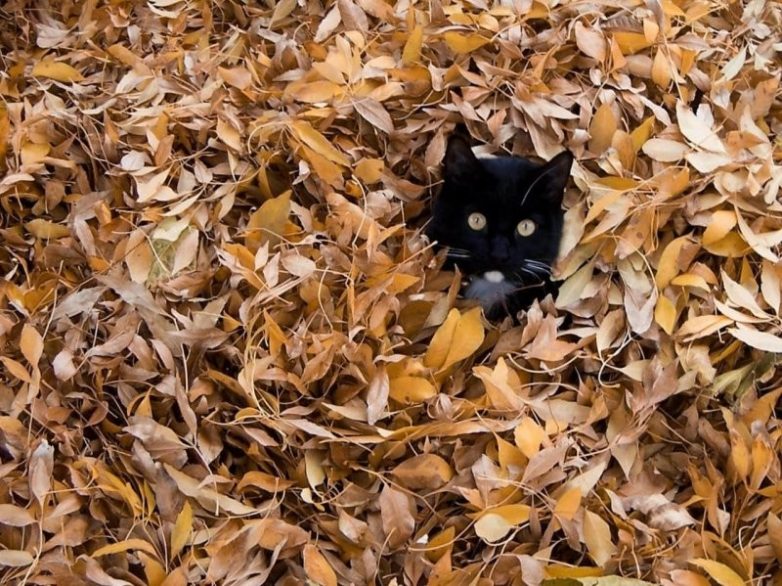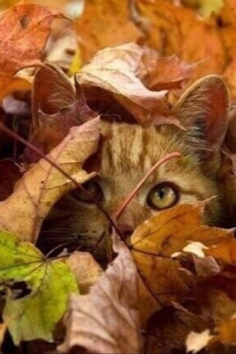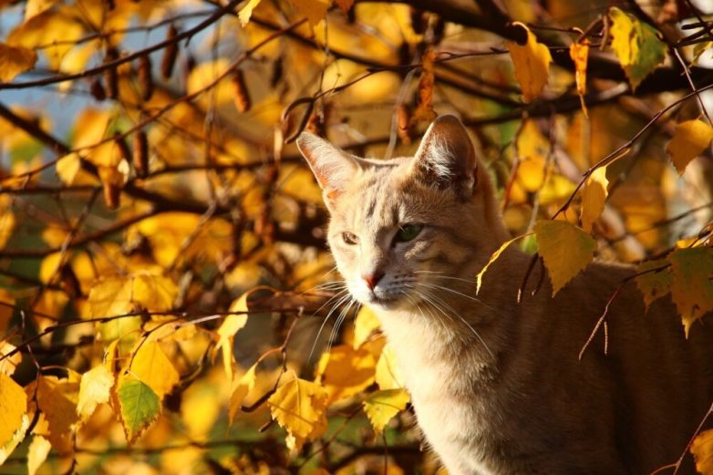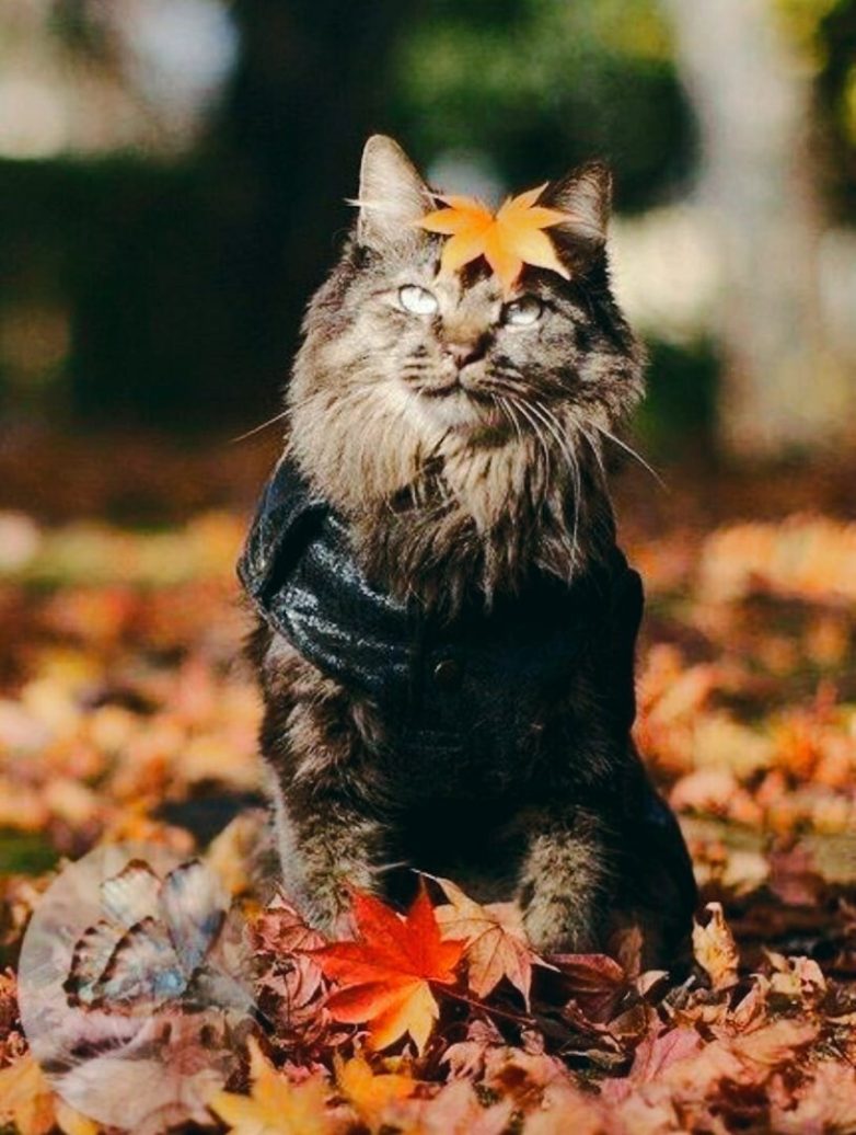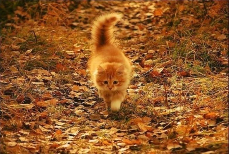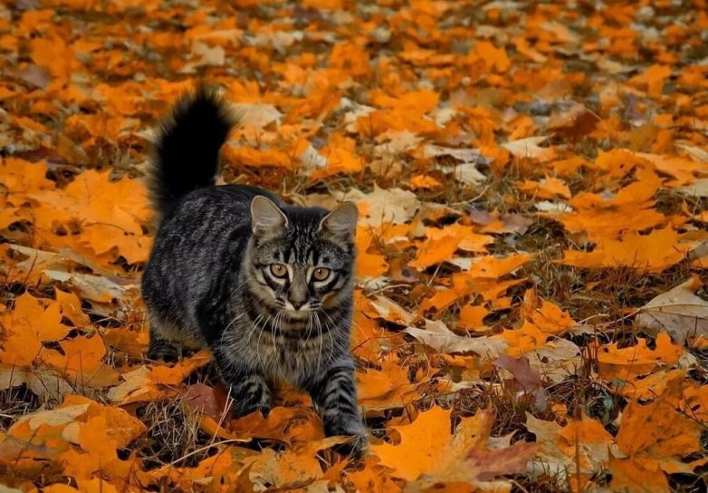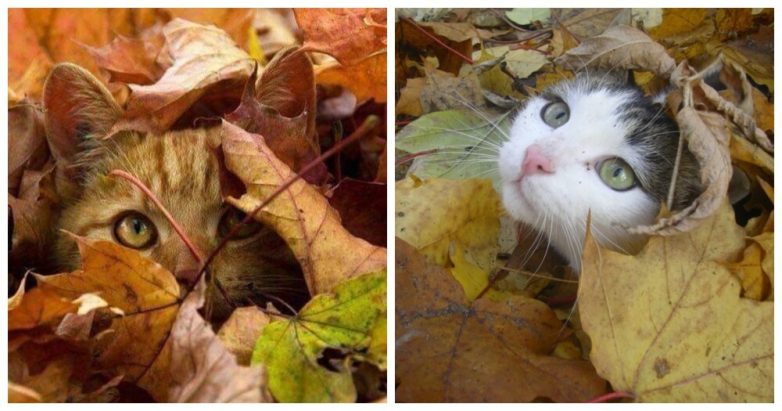 А на земле их уже ждут, встречают и с радостью готовятся позировать на их фоне котики. Наши пушистые друзья выглядят на фоне такой листвы особенно изящно, одухотворённо и мечтательно. Котейки и желтеющие листья – созданы друг для друга и для идеальных фото.