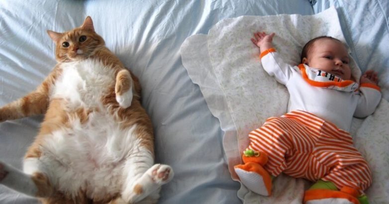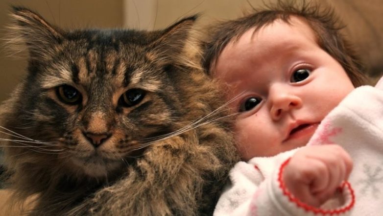 Котику надо дать время привыкнуть к изменениям — новым запахам, звукам. И только потом знакомить его с ребёнком.