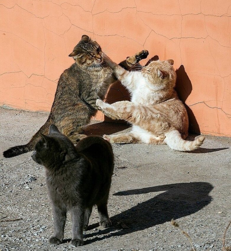 Котейки умеют выгибать спину, прижимать уши, выдавать нервный мяв и выразительно молчать и делают это настолько ярко и экспрессивно, что от этих негодующих товарищей хочется спрятаться куда-нибудь подальше. Предварительно сжавшись в комочек или даже точку. Но сначала, конечно, сделать фото, чтобы было что вспомнить.