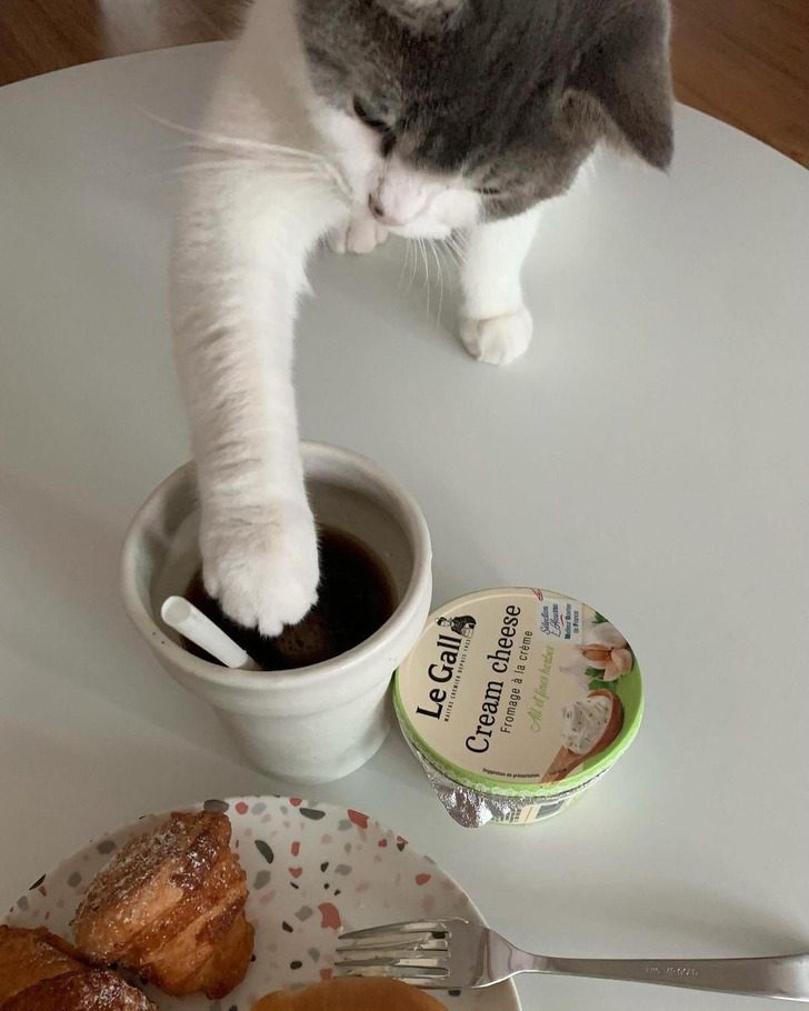 Когда кошка решает, что ваш перекус теперь ее перекус