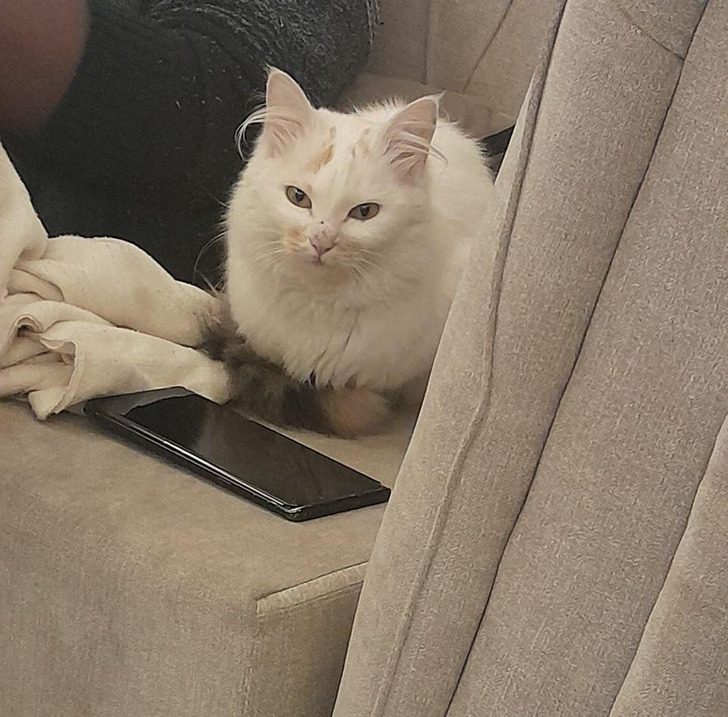 Начал встречаться с девушкой, а моя кошка ее возненавидела. Не то, что гладить себя не давала, а так и норовила цапнуть. Через какое-то время решил сделать любимой предложение. Встал на колено, достал коробочку с кольцом, говорю: «Выходи за меня». И тут кошка как начала носиться по комнате с воем. Никогда раньше так не делала, да и после этого случая за ней такого не водилось. Успокоилась минут через 10 и гордо ушла из комнаты. Не общалась со мной неделю. Девушка ответила мне: «Да», мы поженились и мне все таки удалось подружить моих девочек. Но это уже совсем другая история.«Мы с девушкой поссорились, и вот как ее кошка теперь смотрит на меня»