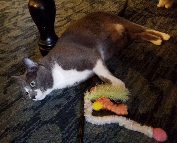 Мысли о тщетности бытия, кажется, настигли этого котика прямо во время игры