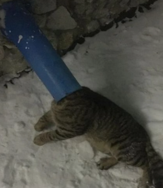 Мурка пыталась укрыться от невыносимого холода, найдя приют в узком пространстве трубы, где ей было немного теплее. Однако лед быстро сковал металлические стенки, и выбраться самостоятельно она уже не могла. Труба стала для неё ловушкой, из которой, казалось, не было выхода.